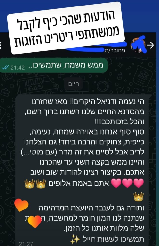 אנחנו מקבלים מאות המלצות מזוגות שהחזירו את החיוך הביתה
